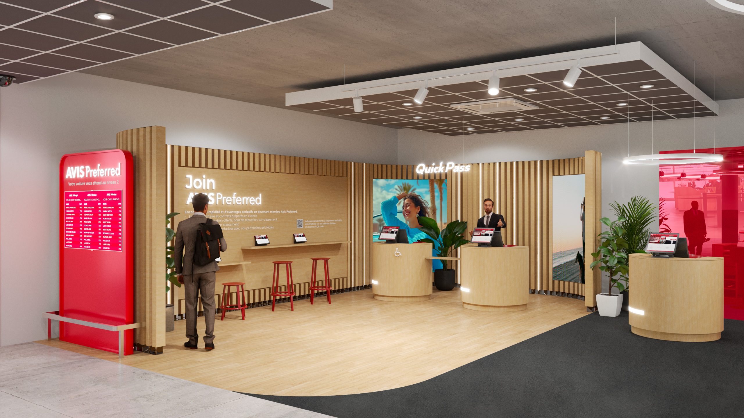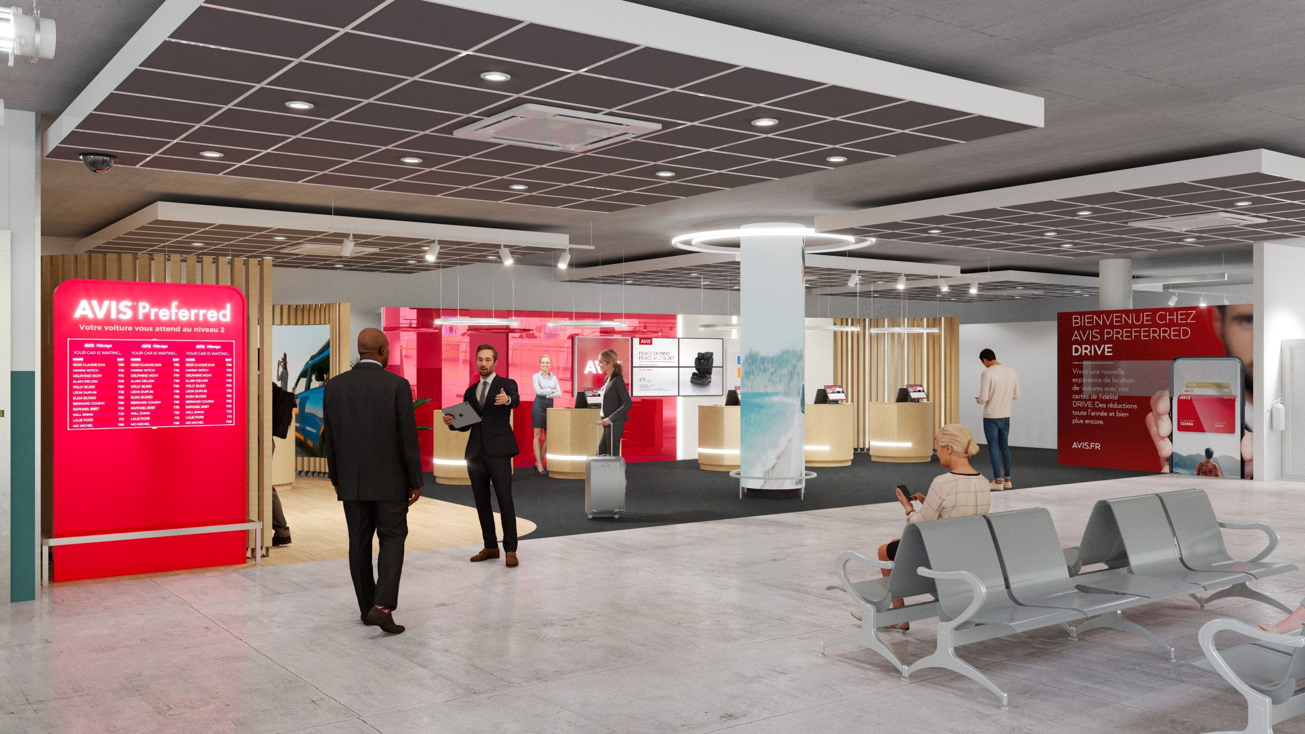 Megamark s’est attaché à repenser le parcours client et la posture commerciale dans un concept adaptable, modulable et évolutif selon l’emplacement et la vocation de l’agence (aéroport, gare, centre-ville). Le geste architectural et le « look and feel » de l’agence renforcent les codes de la marque et permettent de créer une préférence client durable. Pour redéfinir l'expérience de location de véhicules tout en conservant les couleurs qui ont fait le succès de la marque rouge et blanche, les designers de Megamark ont travaillé autour du contraste : brillance et chaleur du bois. Les agences Avis bénéficient ainsi d'un design renouvelé, marqueur de modernité, de confort et d'efficacité. Le bois, la lumière naturelle et les courbes accompagnent le service et favorisent le plaisir de la visite. Ce nouvel environnement implique une nouvelle posture relationnelle qui renforce la proximité client. Le flux est guidé, les clients premium sont par exemple accueillis dans un espace privilégié (zone Avis Preferred et Quickpass). Avis affirme ainsi davantage les valeurs de la marque et propose une nouvelle posture commerciale et relationnelle. Megamark a proposé une gamme complète de services sur-mesure, de l’étude stratégique à la maîtrise d’œuvre, intégrant études, design et mise au point. Cette approche holistique garantit l’efficacité et la réussite du projet, de la création au déploiement.